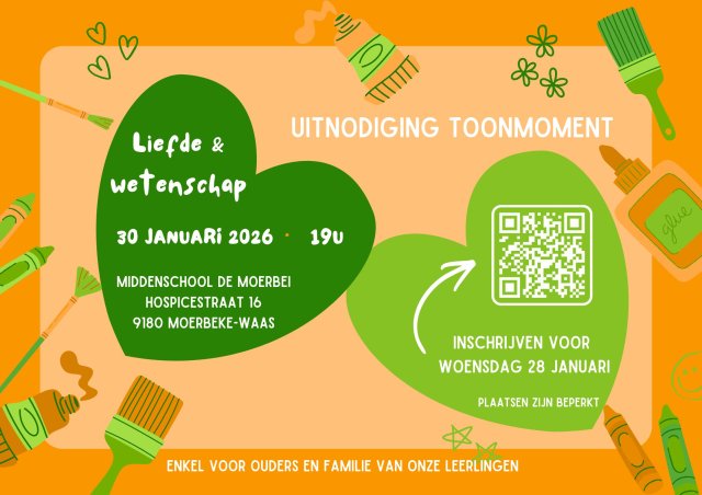 Hierbij kunnen jullie de uitnodiging vinden. Scan de QR-code om je aanwezigheid te bevestigen of klik via Inschrijving Toonmoment 30/01/2026 om 19u - Formulier invullen