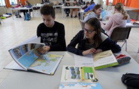 Tijdens de les aardrijkskunde kwamen enkele actieve werkvormen aan bod. De leerlingen trokken in groepjes van twee op expeditie! Zo was er expeditie noord, oost, zuid en ...